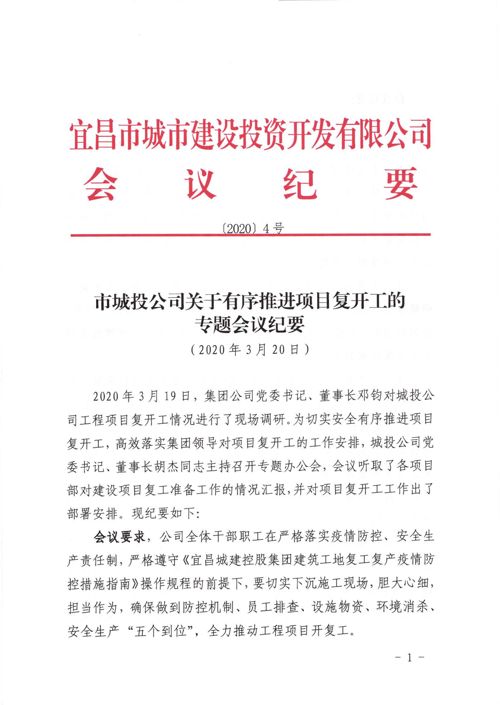 市城投公司關(guān)于有序推進項目復(fù)開工的專題會議紀要
