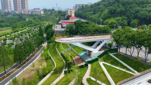 7月31日屈原文化公園項目施工現(xiàn)場一座潔白人行景觀天橋主體結(jié)構(gòu)完工十余名作業(yè)人員正在進(jìn)行永久欄桿安裝及裝飾工程施工預(yù)計9月底整體竣工屈原文化公園人行景觀天橋“背靠”磨基山橫跨江南大道“懸浮”于卷橋河濕地公園造型優(yōu)美...